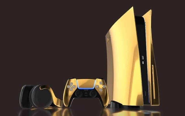 A empresa inglesa Truly Exquisite, especializada na confecção de itens exclusivos de alto luxo, como iPhones folheados a ouro e tênis cravejados de brilhantes, vai começar nesta quinta-feira (10) a pré-venda de sua mais nova criação: o PlayStation 5 folheado a ouro 24 quilates. De acordo com a escolha de cada cliente, o console customizado pode ultrapassar os R$57 mil!!!